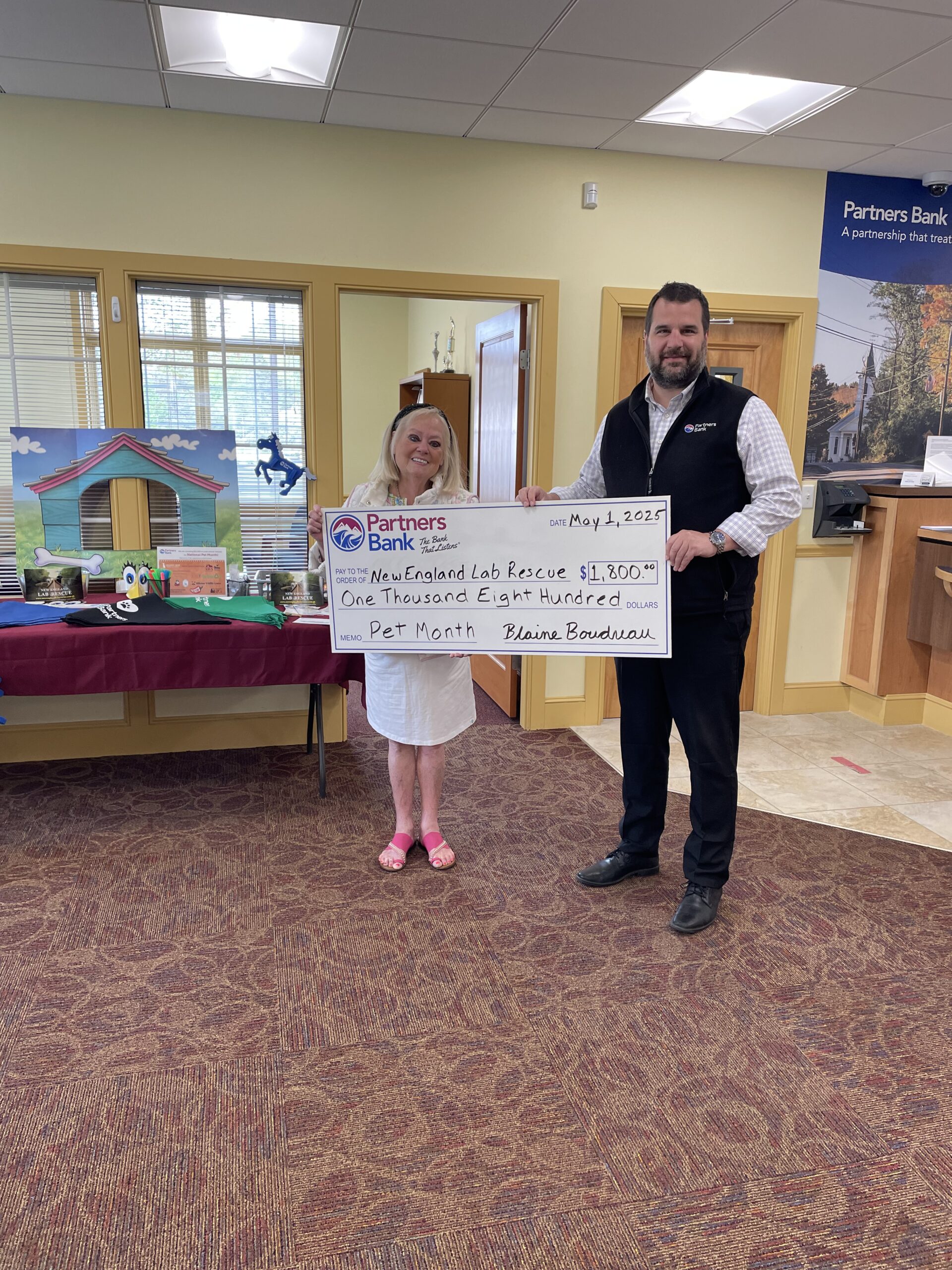 Sanford, ME – In honor of National Pet Month in May, Partners Bank is donating $30,000 to local animal rescues in each community they serve: