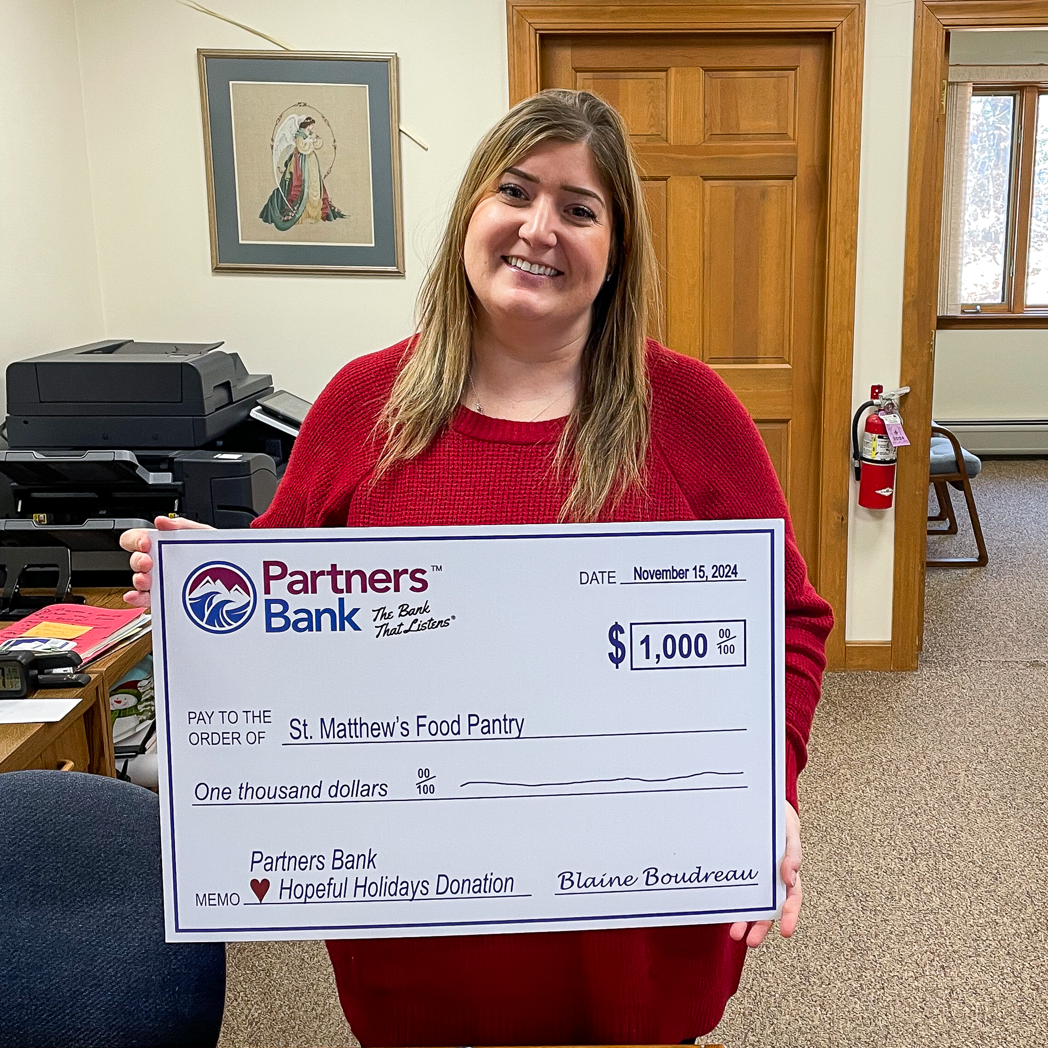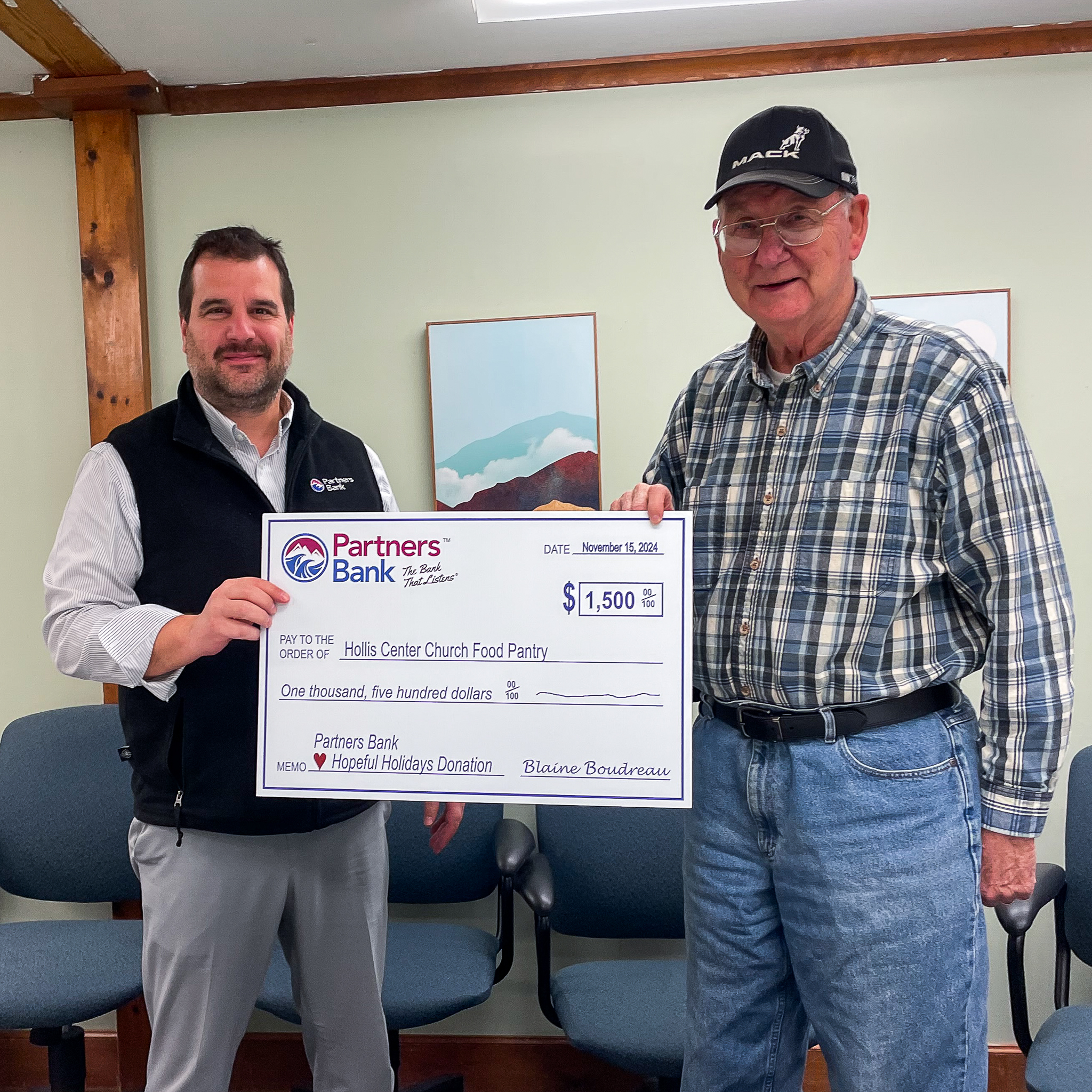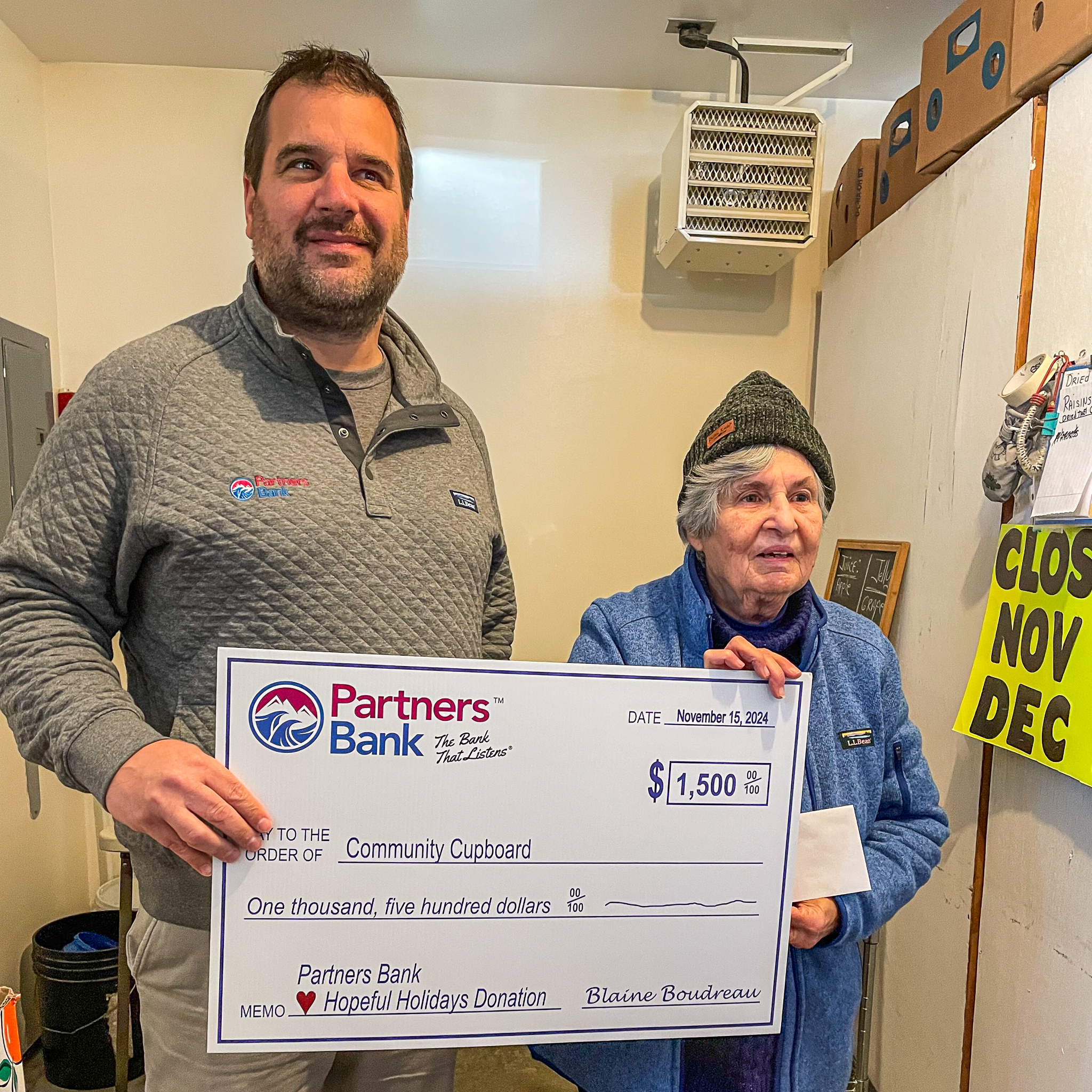 Partners Bank President & CEO Blaine Boudreau shares, “With the Partners Bank ♥ Hopeful Holidays Donation, we want to give hope to those who could use a reminder that they are not alone and that someone cares about them.”
